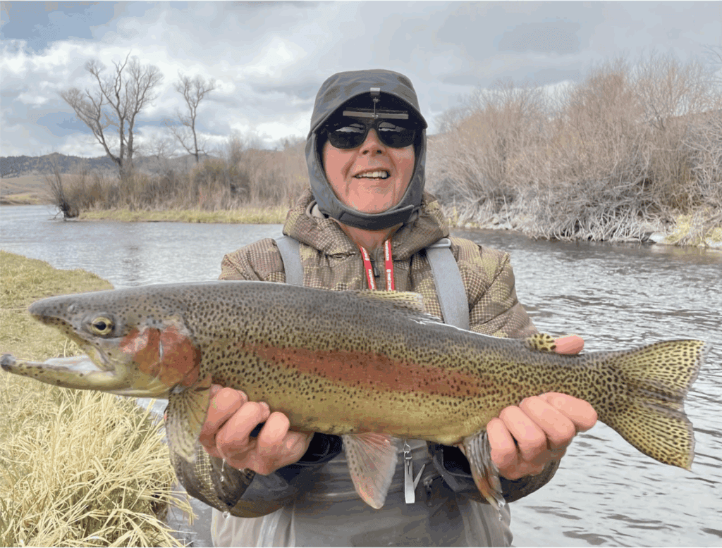 Buck rainbow caught by longtime client John C. on the Missouri River in April. We did not measure the fish but guessed it to be close to 23″.
