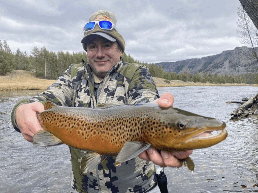 Return client Jon B. landed the 22″ brown with guided Matt Hoff in Yellowstone National Park on the Madison River in mid-October.