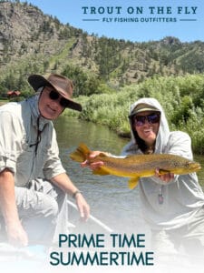 It’s best to start out fishing with smaller patterns, especially for grasshoppers. A few of our favorites are the Thunder Thighs and Panty Dropper patterns. We’ll rotate colors – yellow, orange, tan, and purple – and sizes to determine what’s working. As the season goes on, we’ll keep changing it up and adding bigger sizes until summer peters out.