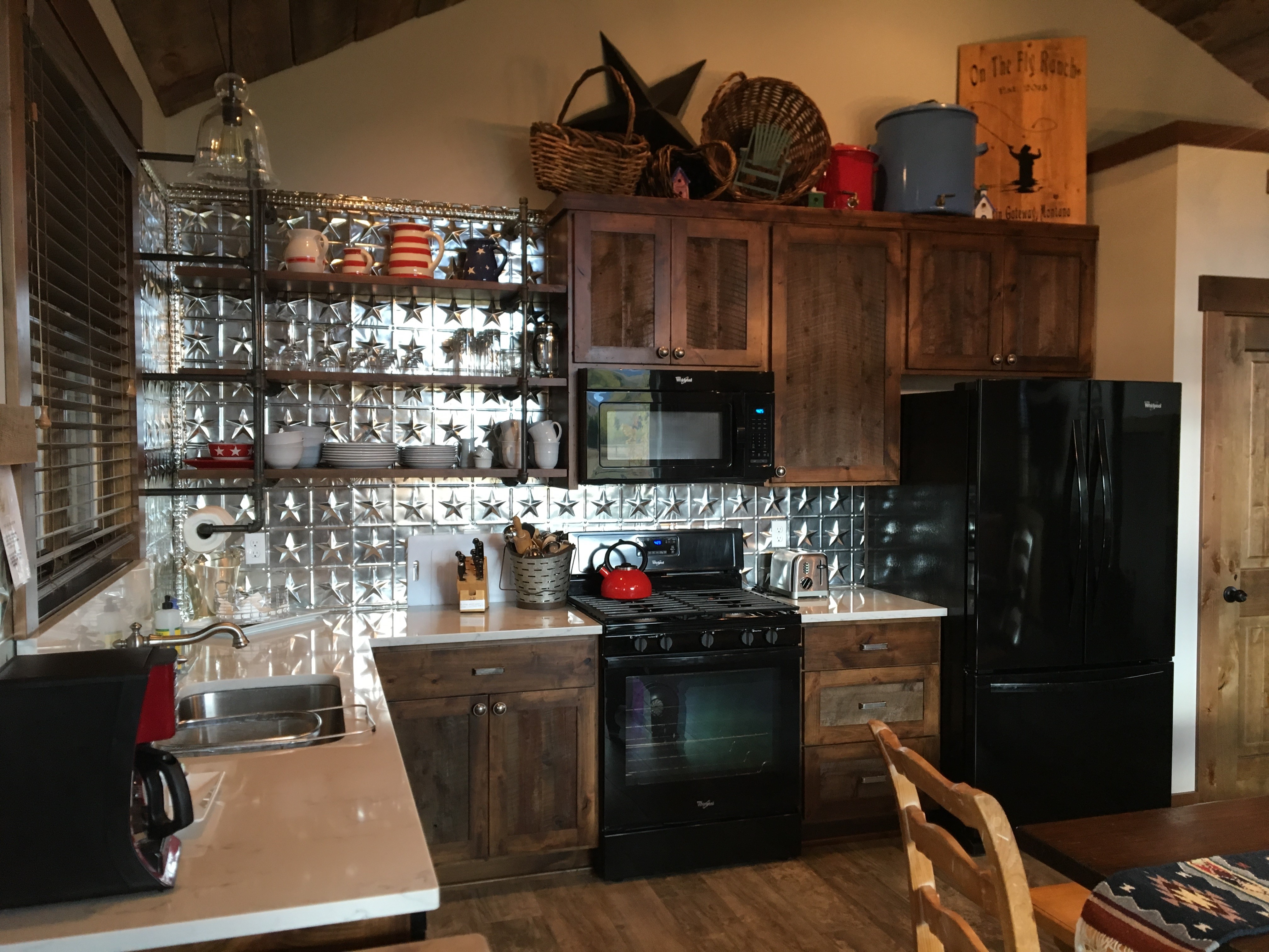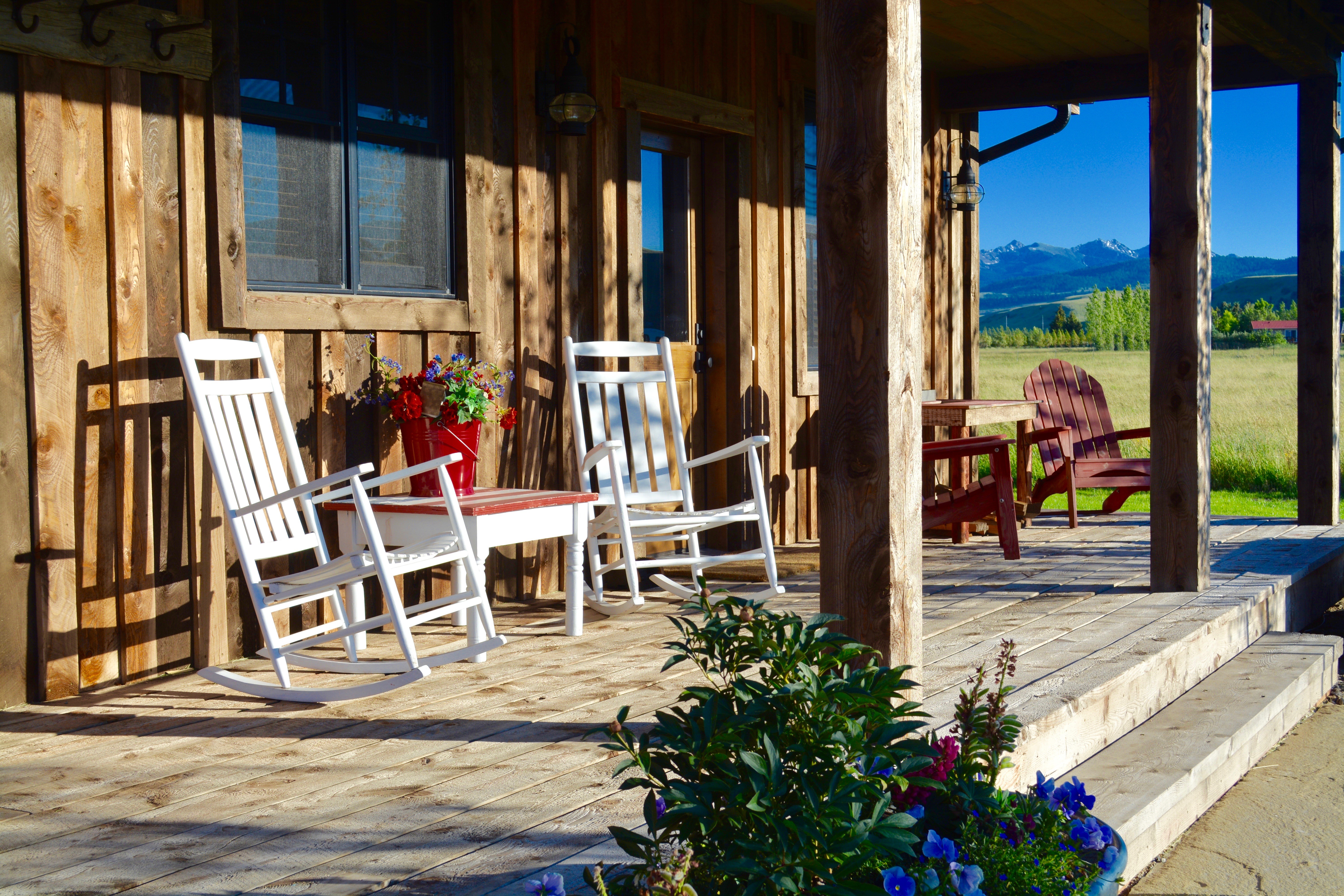 Drive two minutes (or walk) to historic Stacey’s Old Faithful Bar for huge steaks and burgers, or the Post Office Pizza. There’s also a country cafe for breakfast and a store for beer, wine, and essentials. Drive five minutes for lattes and scones. Or explore downtown Bozeman (25-minutes) and Big Sky Resort (40 minutes). Relax on the 30-foot porch, BBQ, or sit by the fire pit as stars appear and elk bugle.